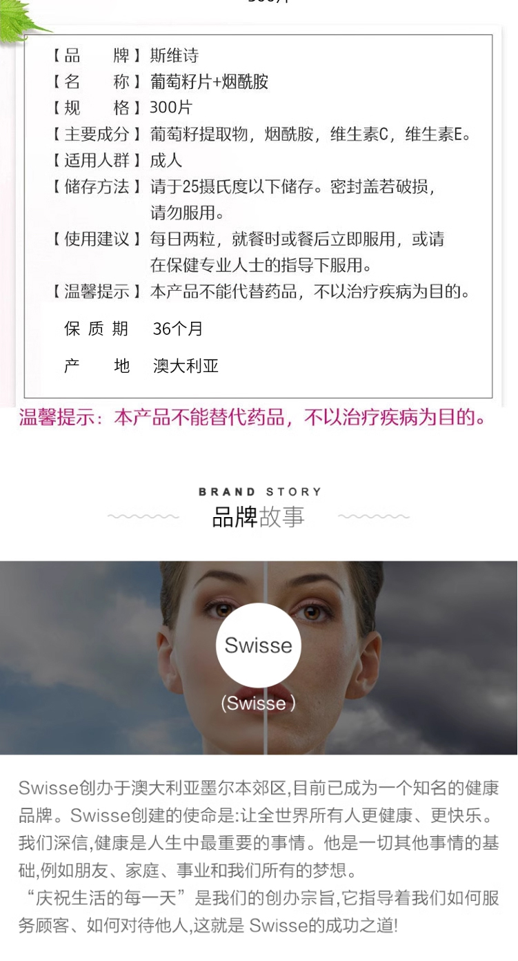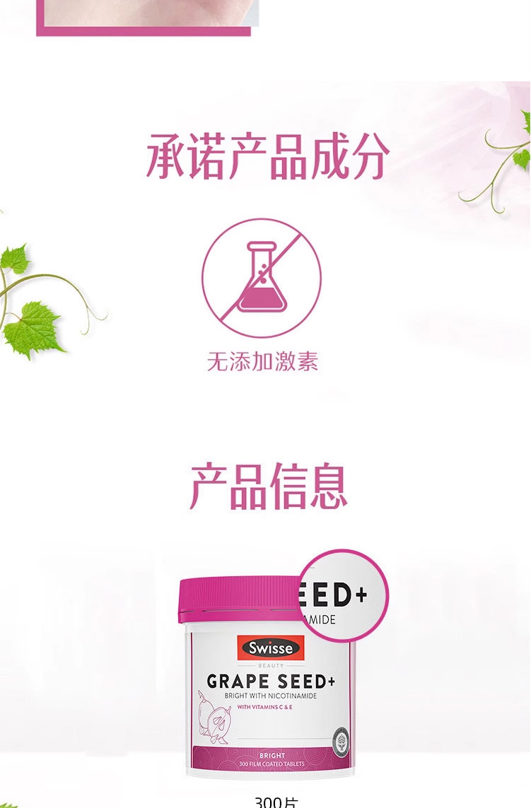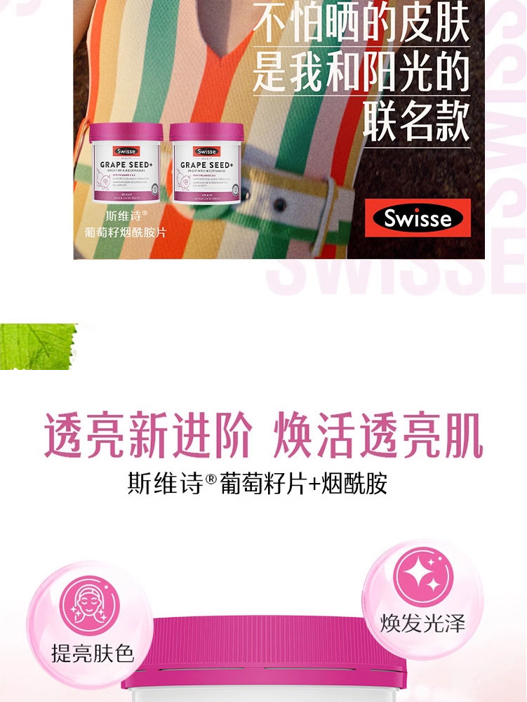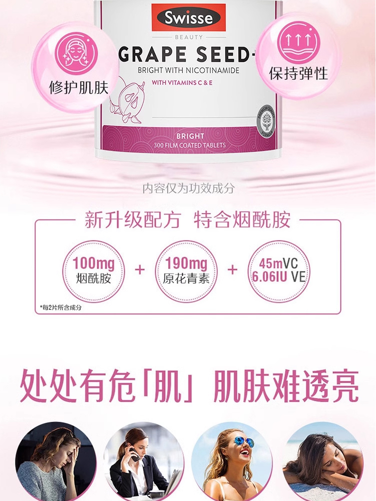 Swisse 烟酰胺葡萄籽精华片滋养提亮 300粒 保质期2027.10