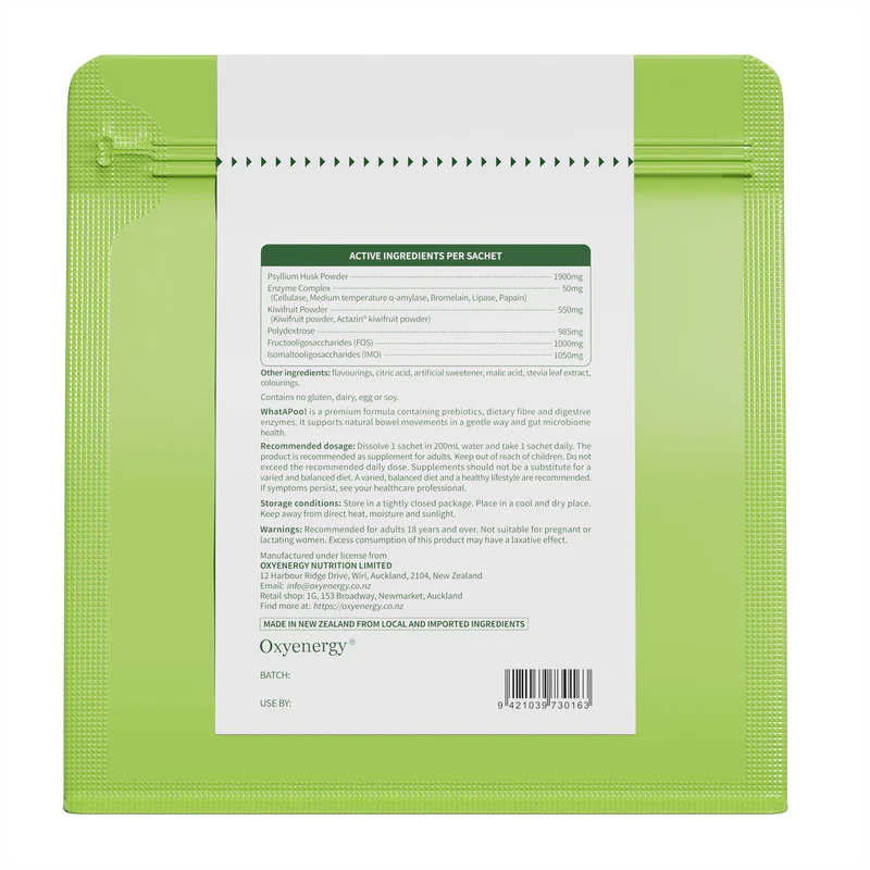 忙碌的生活节奏、低纤维饮食以及日常压力,容易让肠道变得迟缓、不顺畅。WhatAPoo! 结合益生元、膳食纤维和消化酶,温和帮助维持规律排便,并支持健康的肠道微生态。从天然奇异果(Kiwi fruit)营养中汲取灵感,为肠道带来轻松与平衡。