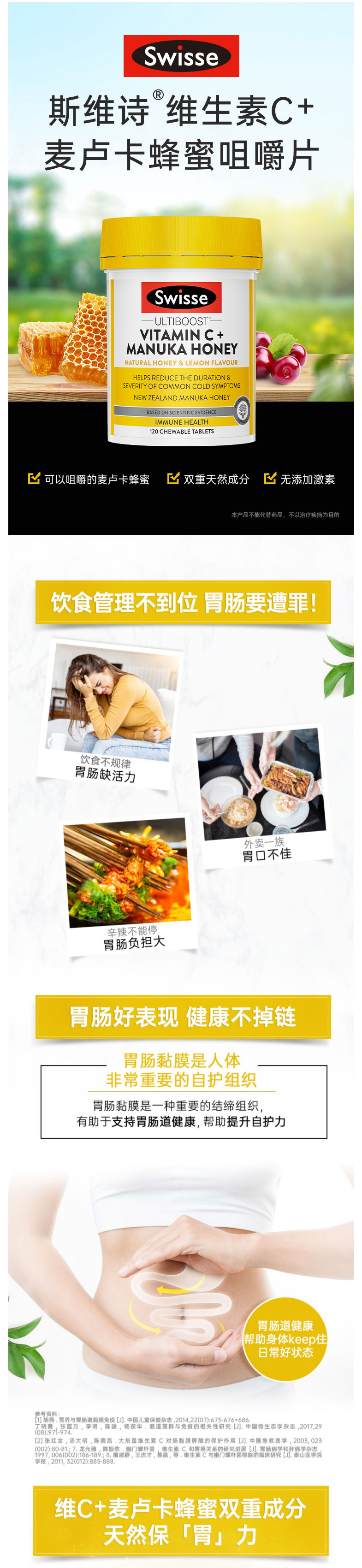 Swisse 维生素C+麦卢卡蜂蜜咀嚼片 120粒 保质期2028.8