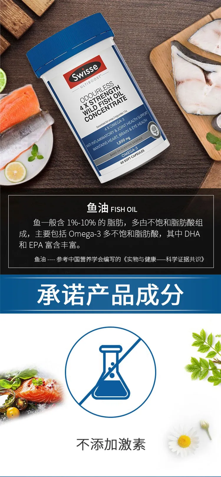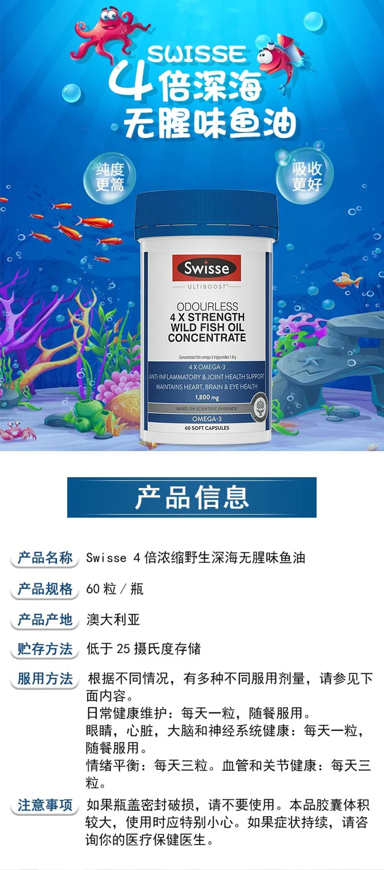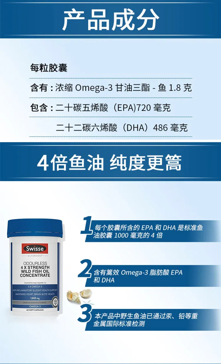 Swisse 斯维诗 4倍浓缩野生深海无腥味鱼油 60粒 保质期2027.11