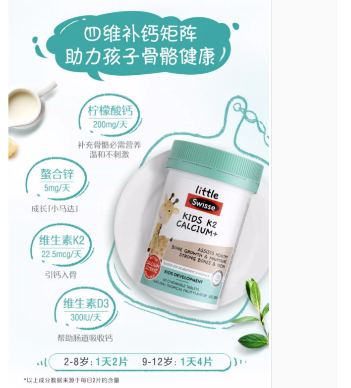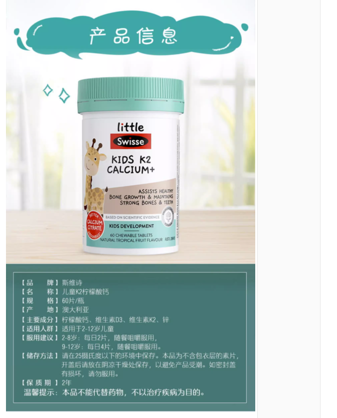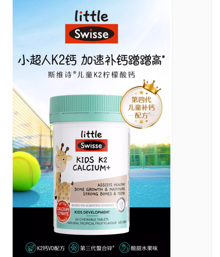 Swisse儿童K2长颈鹿 柠檬酸钙 60粒 保质期2027.5