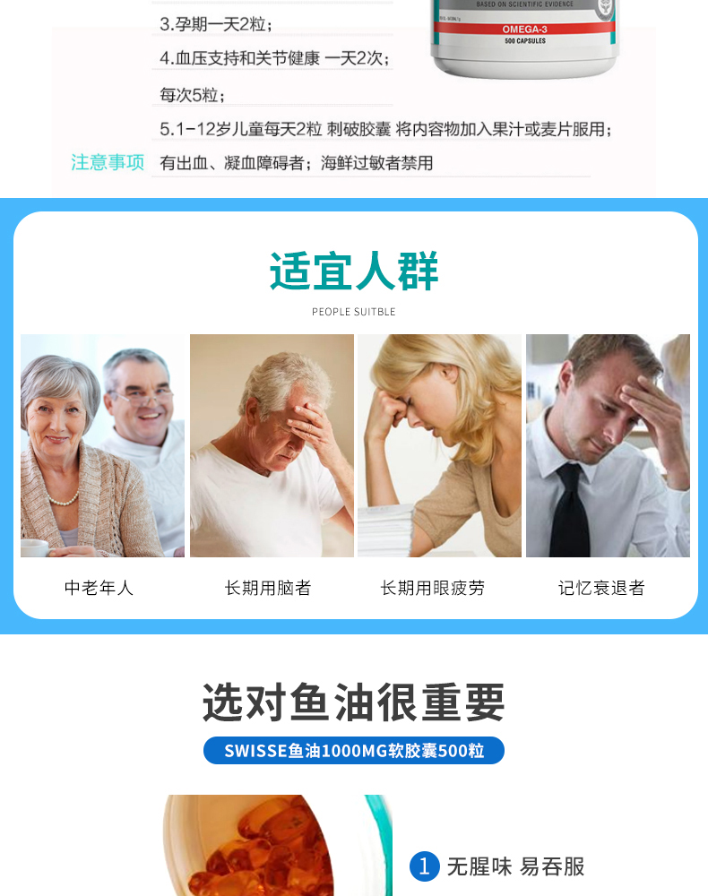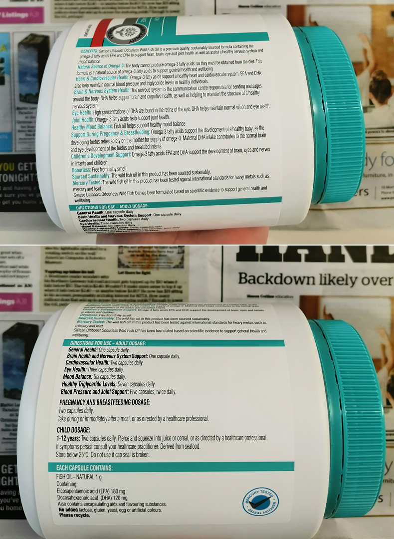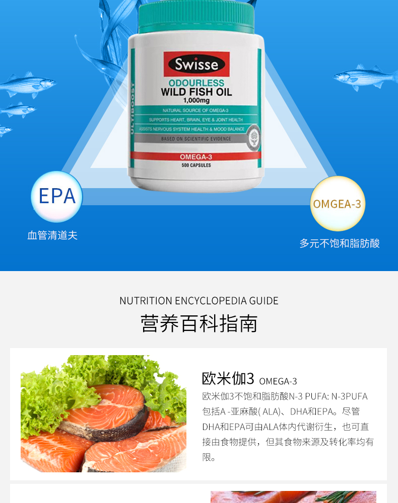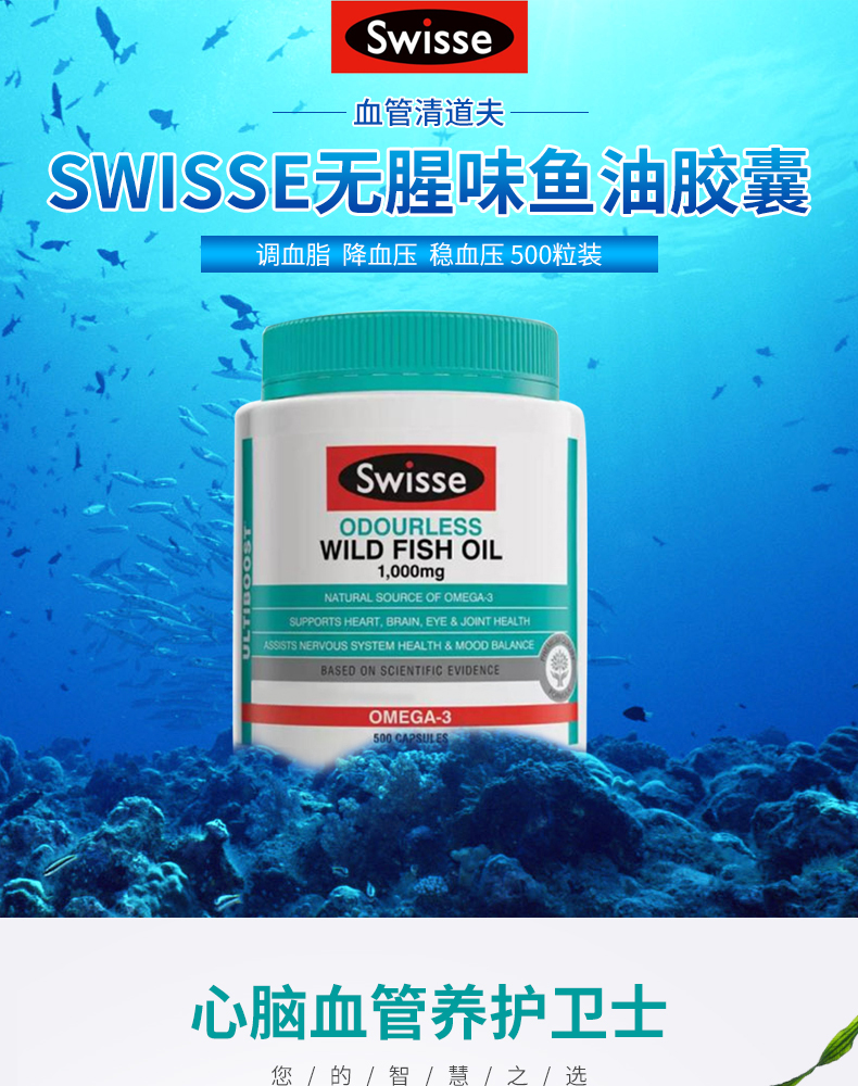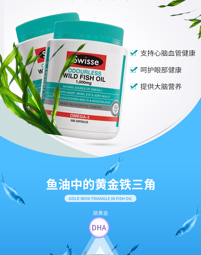 【400粒】Swisse 澳洲野生无腥味深海鱼油1000mg软胶囊400粒 omega-3 保质期2027.8