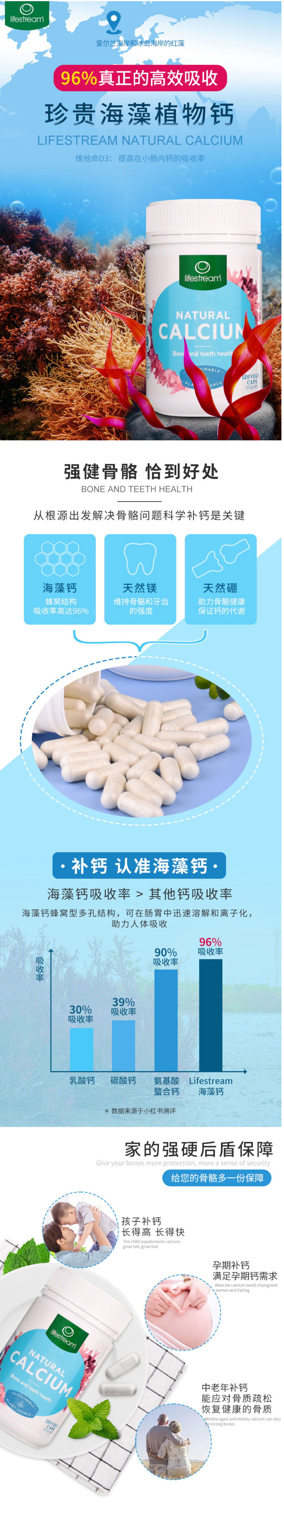 Lifestream 生命泉 天然 有机海藻钙胶囊 120粒 保质期2027.9