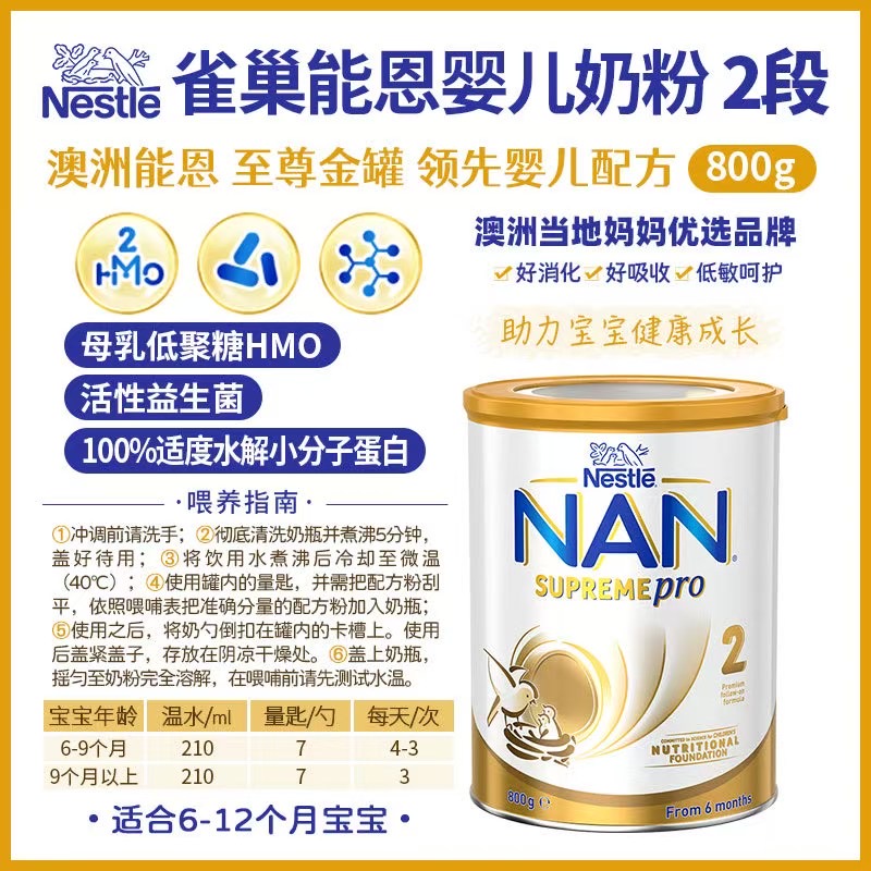【澳洲发货】Nestle 雀巢超级能恩Pro水解奶粉2段 800g 3罐 保质期2027.4左右