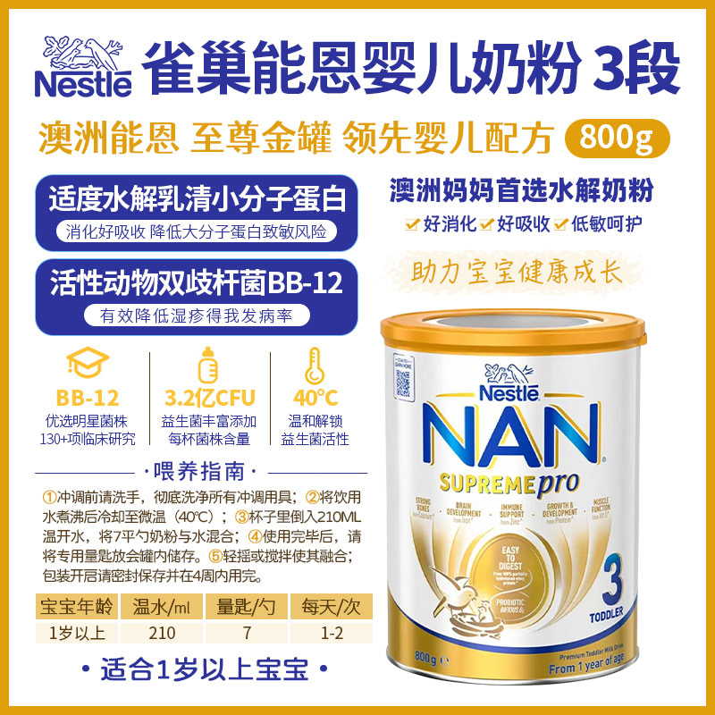 【澳洲发货】Nestle 雀巢超级能恩Pro水解奶粉3段 800g 3罐 保质期2027.5左右