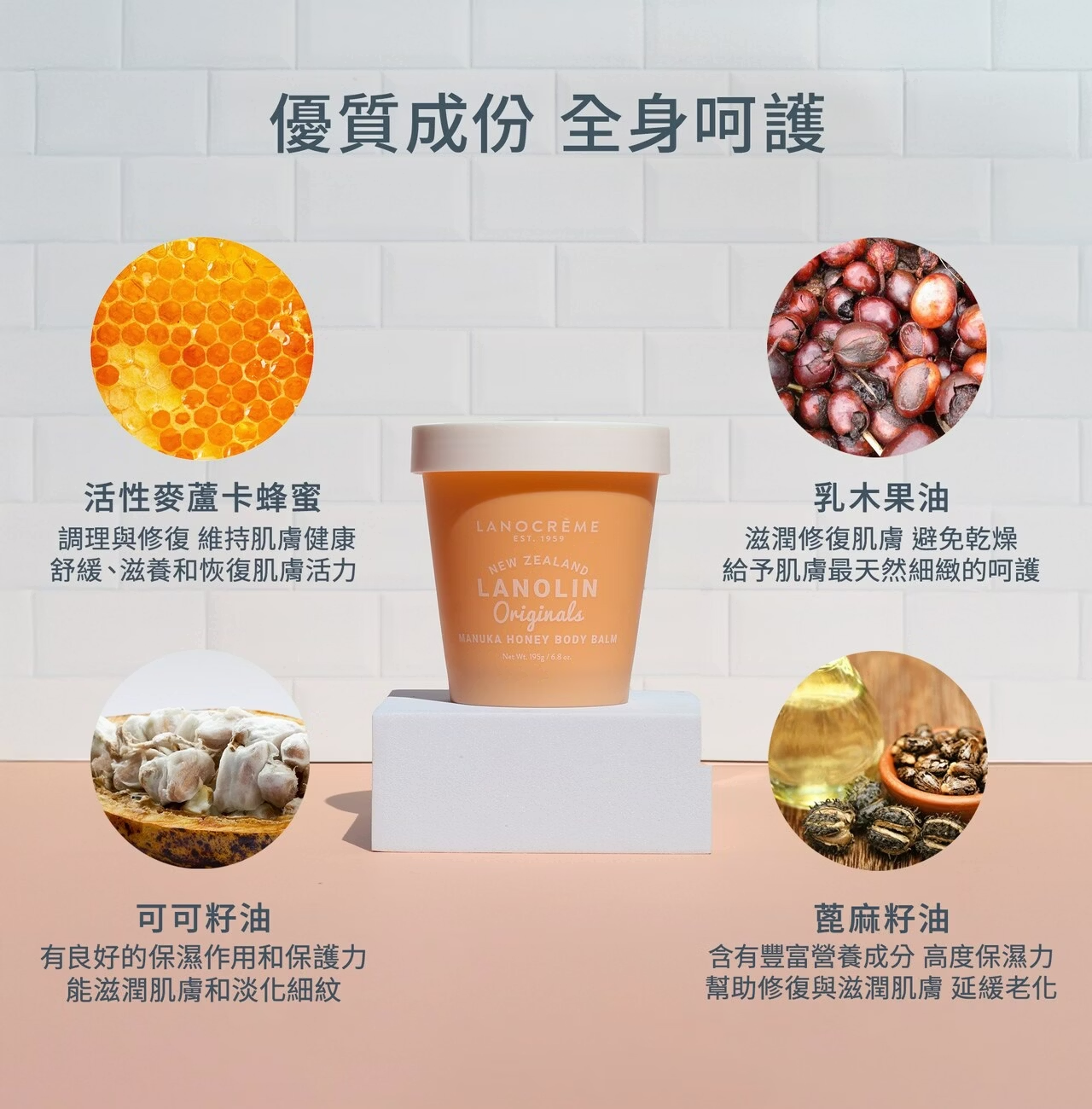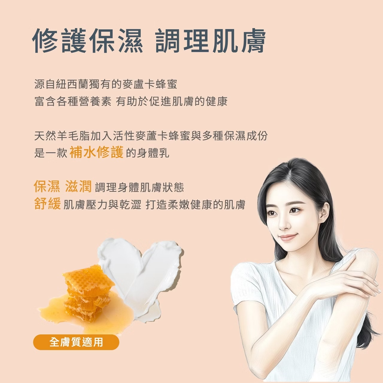 【因天气原因液体侧漏无法理赔】Lanocre 兰侬羊毛脂麦卢卡蜂蜜身体乳霜195克 保质期2028.6