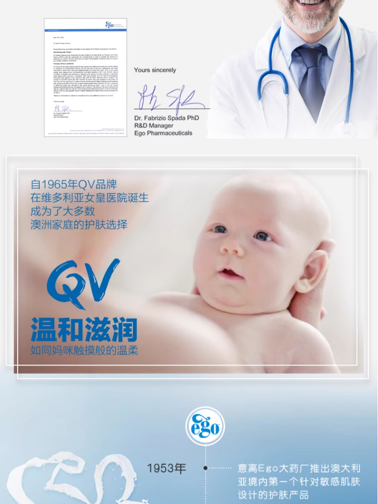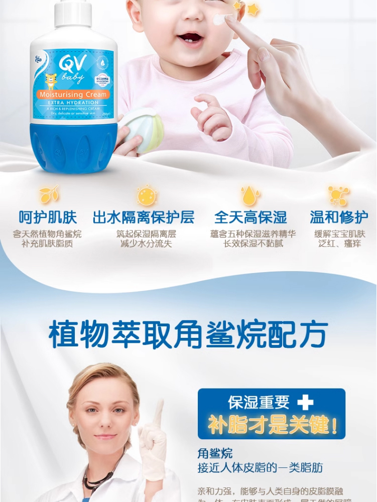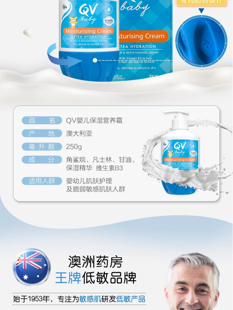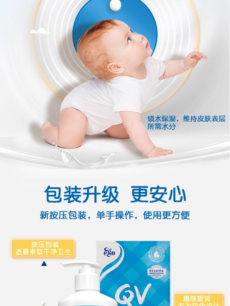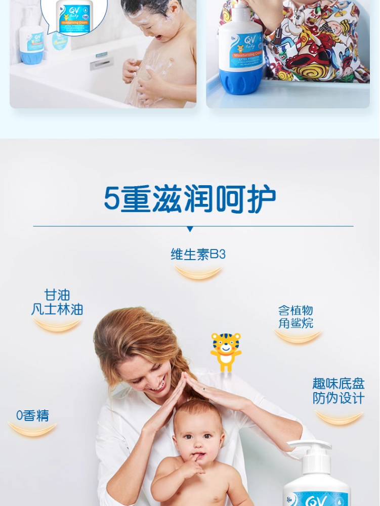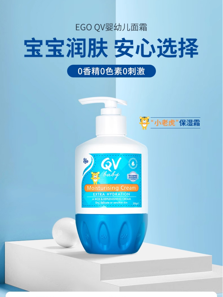 【漏液不理赔】Ego QV小老虎婴儿宝宝面霜保湿润肤乳儿童身体乳霜 按压头250g 保质期:2028