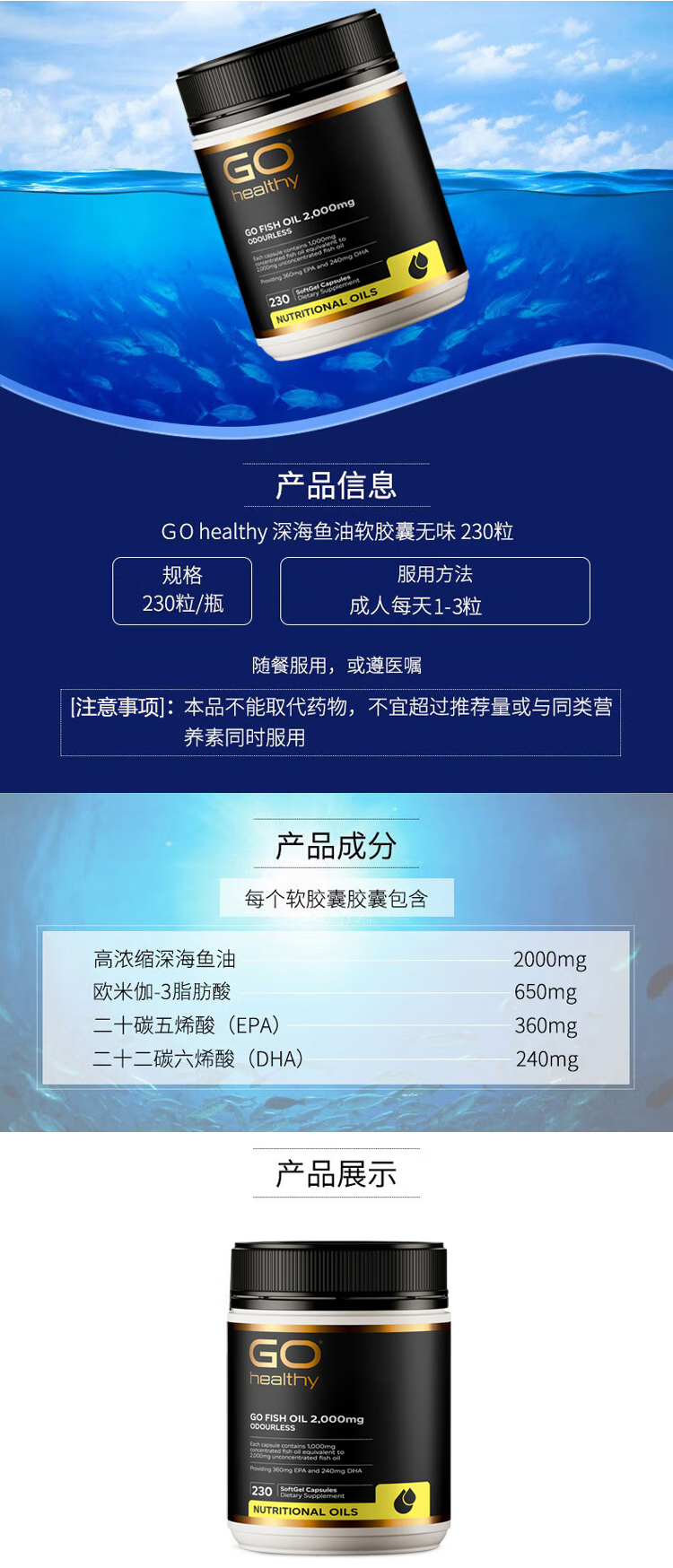 【产品名称】GO Healthy无腥鱼油2000mg