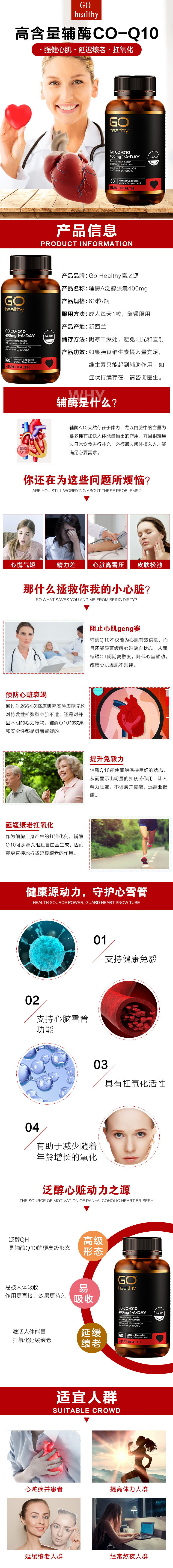 【胶囊因天气原因融化不理赔】Go Healthy 高之源 高含量Q10 辅酶 400mg 60粒 护心保护心脏 保质期2028.5