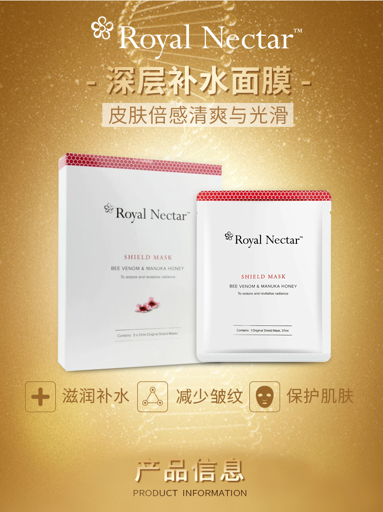 【秒杀】【皇家蜂毒系列买三送8分钟眼膜】Royal Nectar 皇家蜂毒 花蜜蜂毒逆龄水光贴片面膜 深层补水 5片*10ml/盒 保质期:2028.2