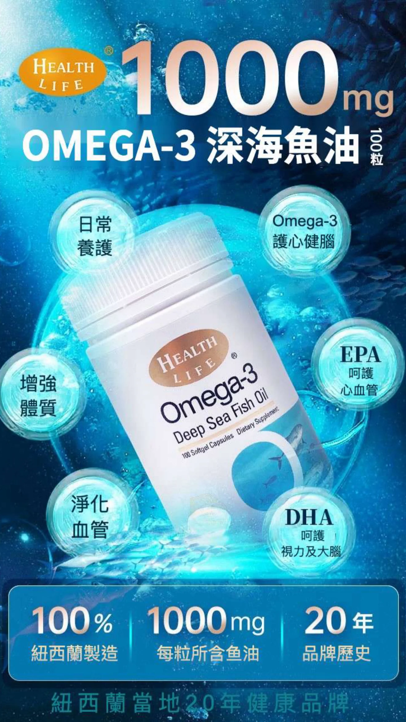 HealthLife 1000毫克深海鱼油 100粒 保质期2026.12