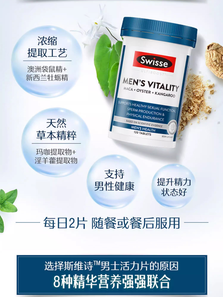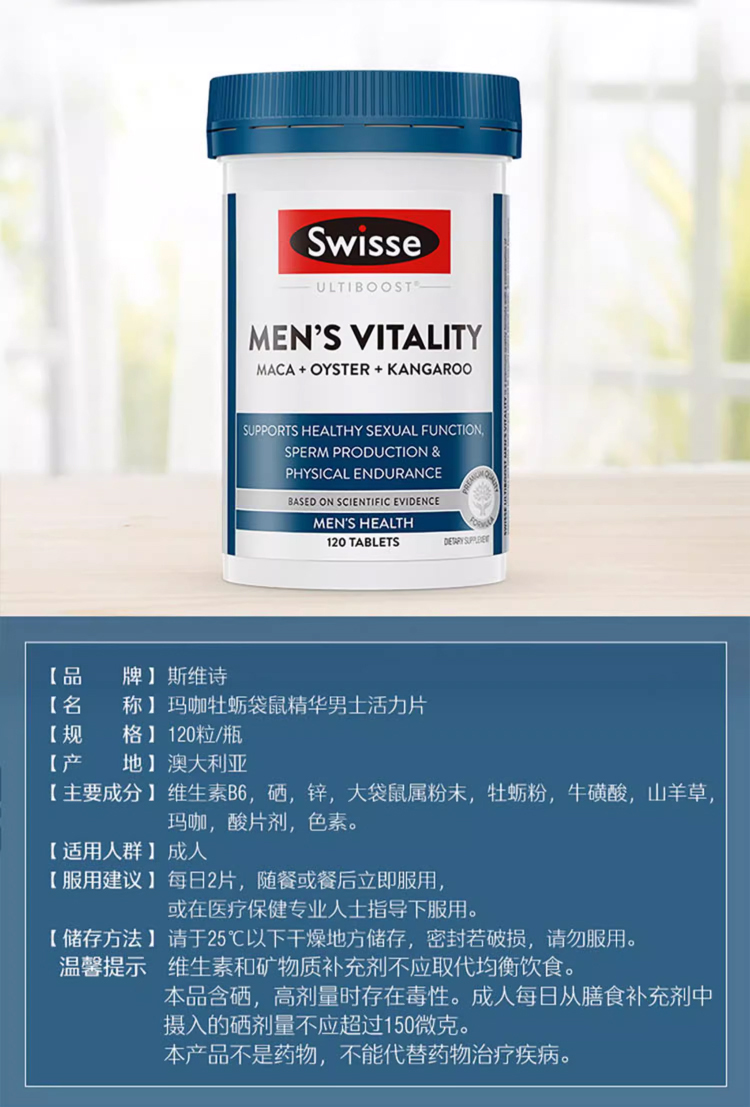 Swisse 男士雄风片玛卡片120片 玛咖牡蛎精华袋鼠生蚝活力片 保质期2026.11