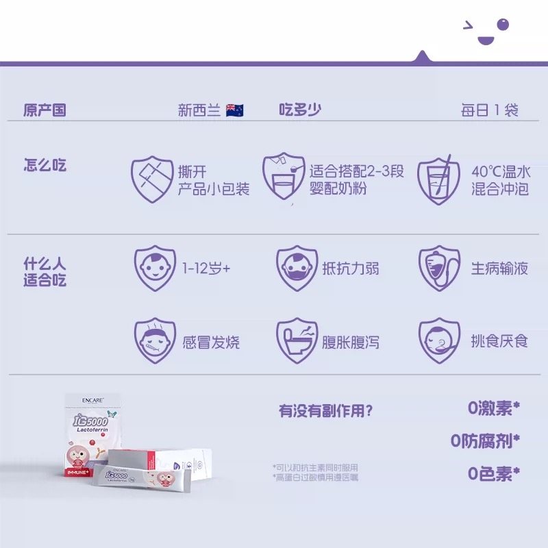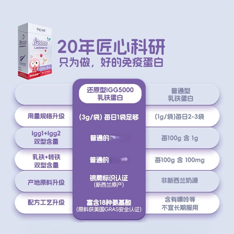 Encare 免疫蛋白IGg5000 耳牛双型乳铁蛋白 3克*10袋 保质期2028.5
